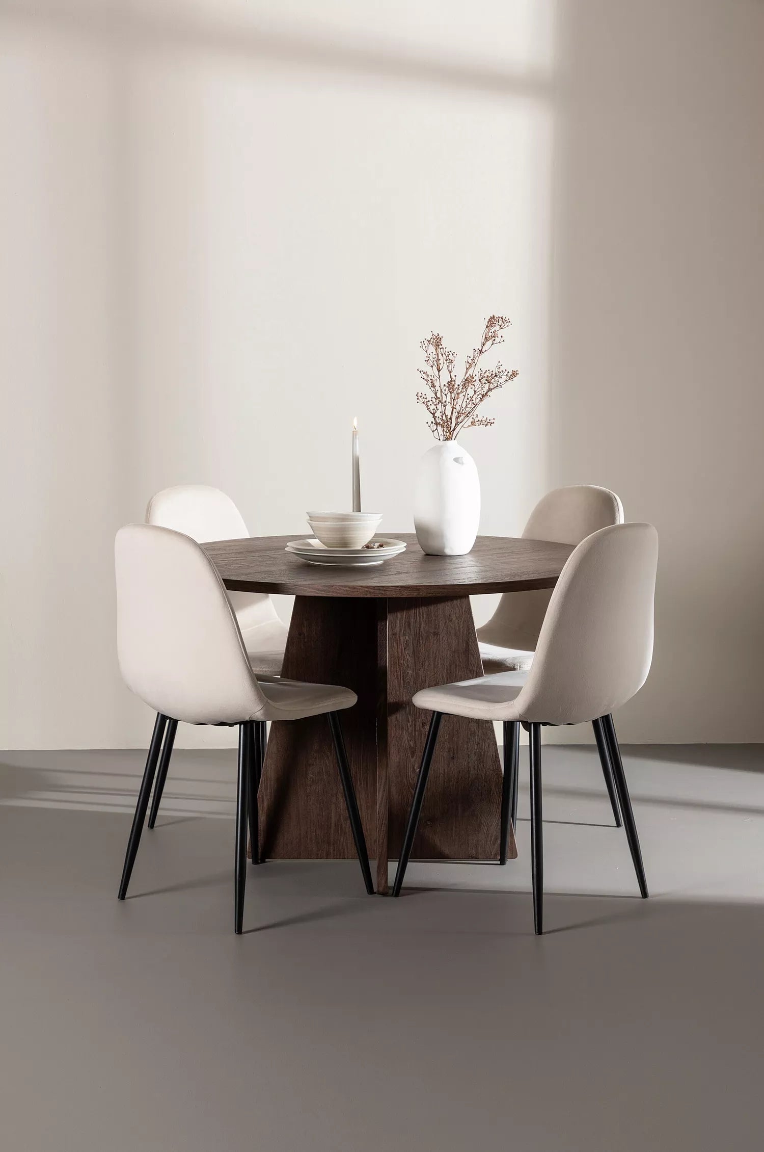 POLAR & BOOTCUT Runt Matbord ⌀110 Mocka + 4 Matstolar Beige