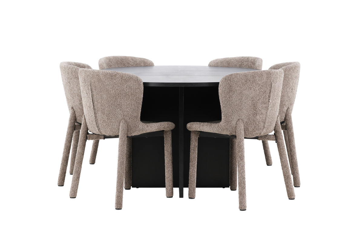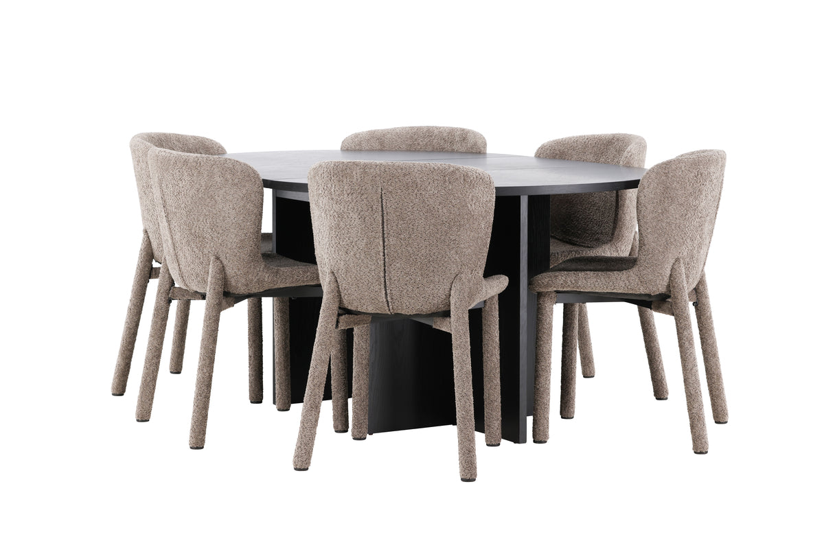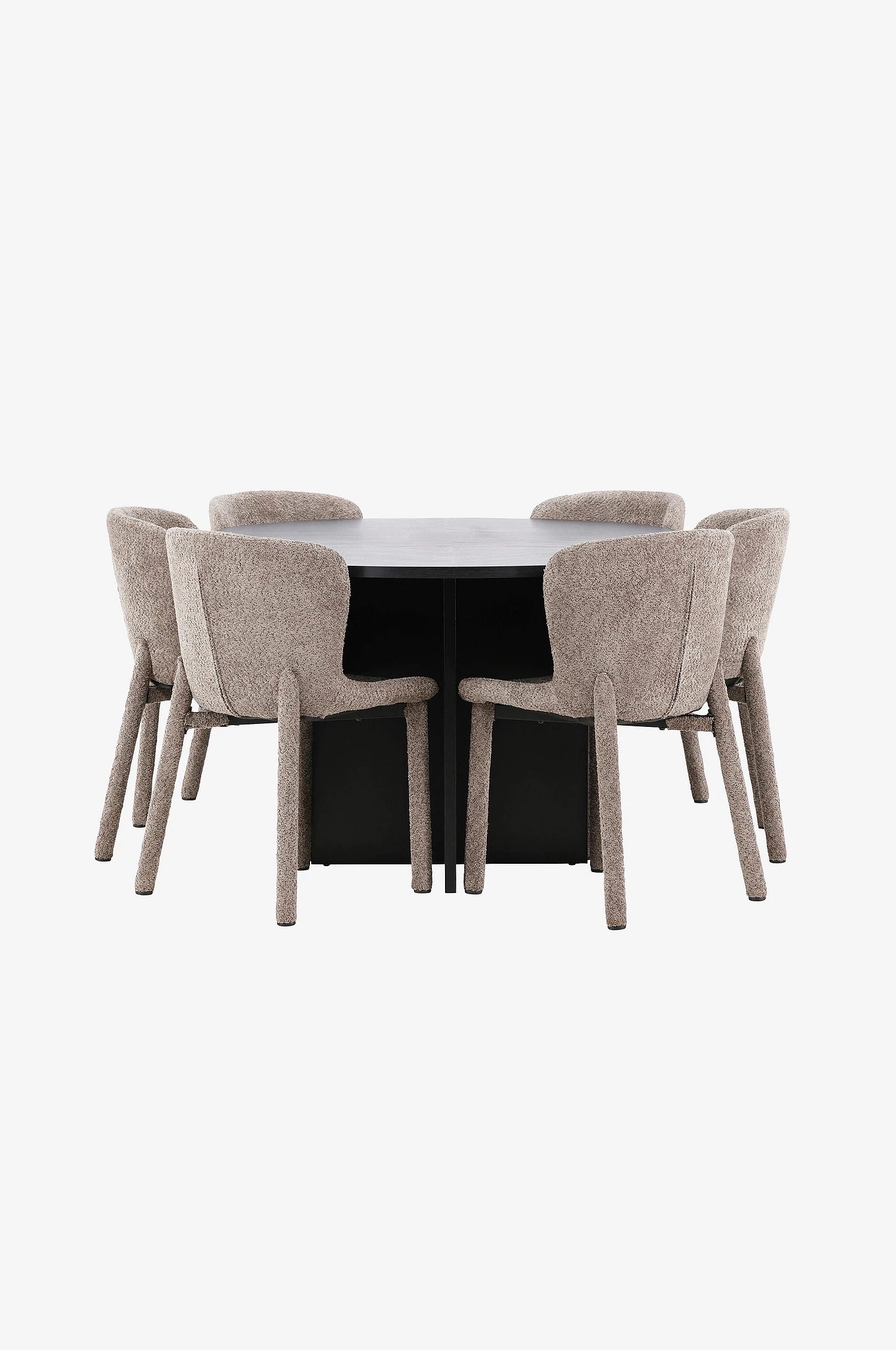 STRADA & ASTORIA Rektangulärt Matbord ⌀120 Svart + 6 Matstolar Brun